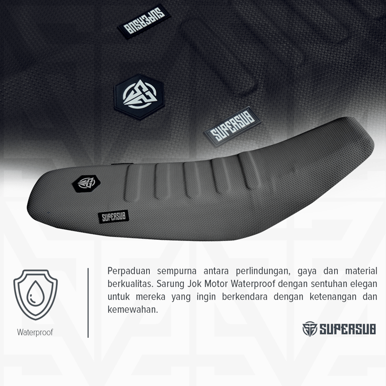 Sarung jok SUPERSUB menggunakan material kulit sintetis berkualitas tinggi yang didesain dengan tekstur bermotif Tatami Japan. Motif ini bukan hanya sekadar estetika, tetapi dirancang khusus untuk memberikan grip yang kuat. Dengan cengkeraman ekstra, material ini sangat cocok untuk digunakan pada motor yang membutuhkan kendali penuh dalam berbagai kondisi dijalan.